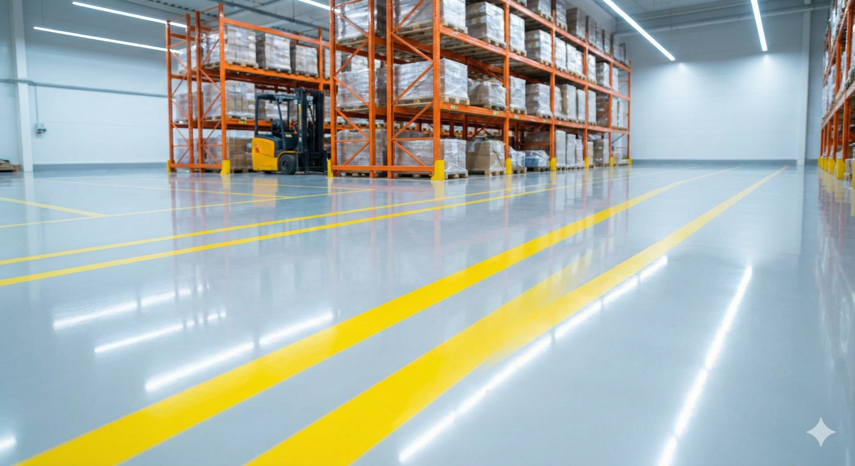 "Hired them to coat our 5,000 sqft warehouse. Safety lines are crisp, and the durability is holding up to our forklifts perfectly. Highly recommend for commercial work."